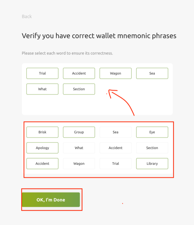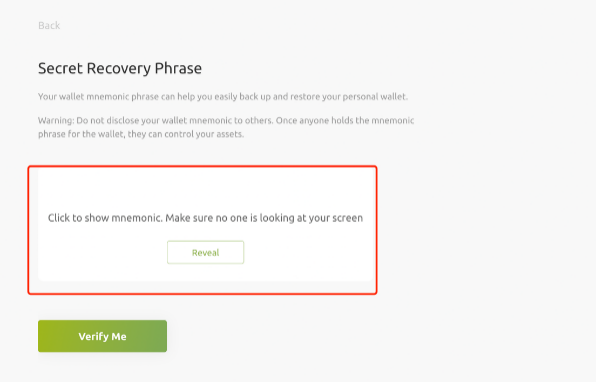4. 点击Reveal查看账号的恢复助记词,记录在案,点击Verify Me