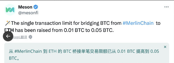 所有之前跨链(注意不是质押)到merlin链的资金都可以转出了!