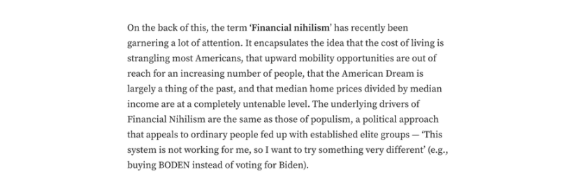 投机永不消亡是有原因的。在这个周期中,它们是模因币。研究金融虚无主义。