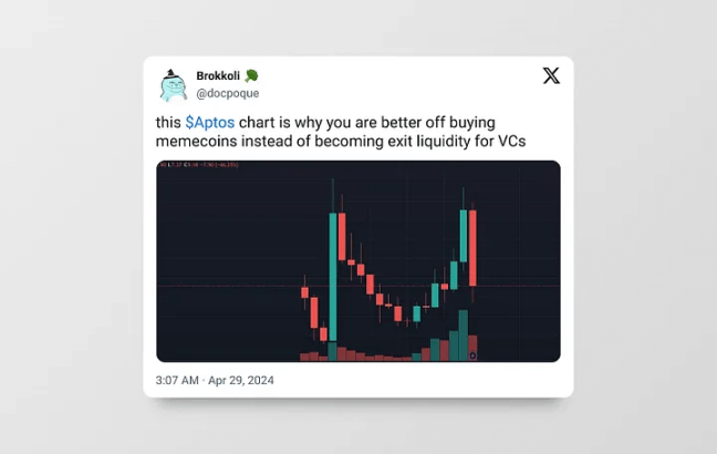Mememcoins 可以作为一种出色的筹款和 GTM 策略。传统上:项目通过将 15-20% 分配给风险投资公司来筹集资金→开发产品→推出代币→通过模因 / 营销建立社区。然而,社区最终被风险投资公司抛弃了。