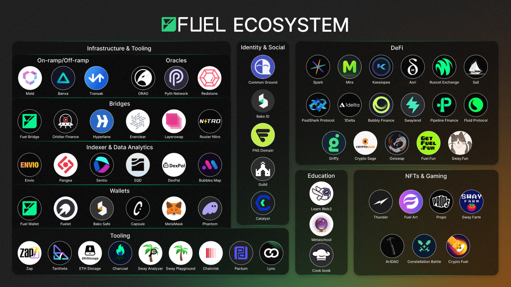 我们也很高兴与业内一些顶尖的合作伙伴合作,他们正在帮助构建 Fuel 的基础设施: