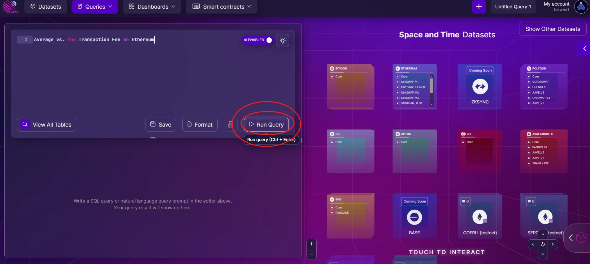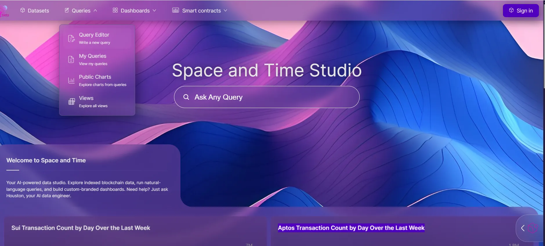 接下来,我们使用 Space and Time 的 Queries 应用。