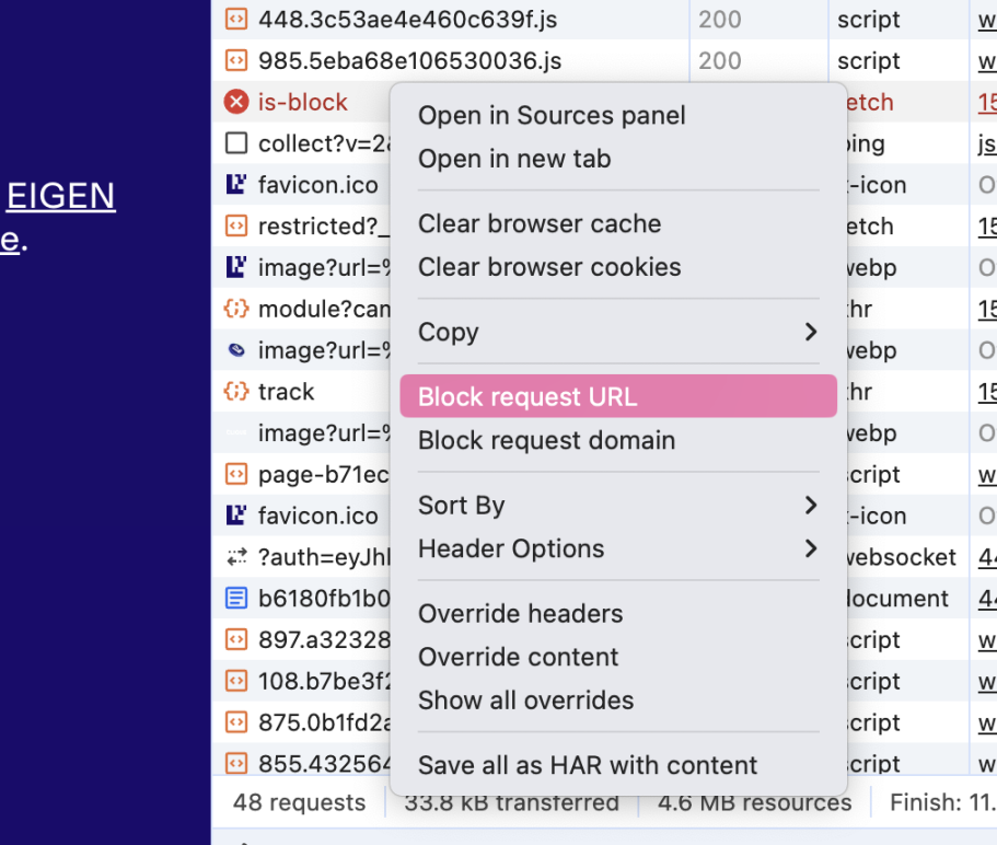 - 右键,选择 Block requst URL(封锁请求链接)