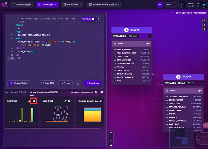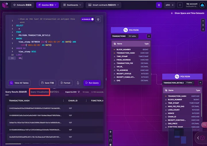 3.查询结果出来之后,点击下面的query visualization按钮,将你的查询结果可视化为表格
