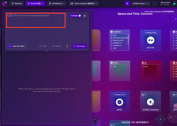 - 登录之后进入网站首页,点击左上角queries按钮,选择query editer按钮,进入查询界面