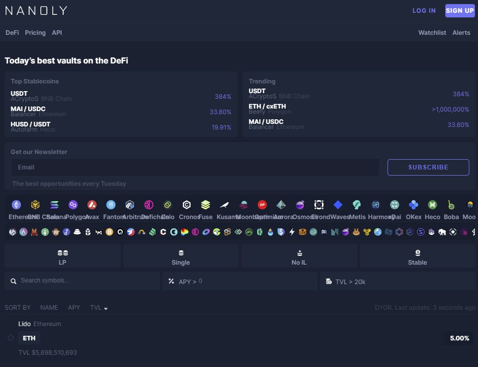 Nanoly 将全网的稳定币理财协议一网打尽。