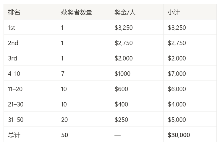 随着第三季圆满落幕,我们已完成连续三季总计122,500美元的奖励发放。剩余27,500美元将用于Sophon即将推出的全新激励计划,更多精彩值得期待!