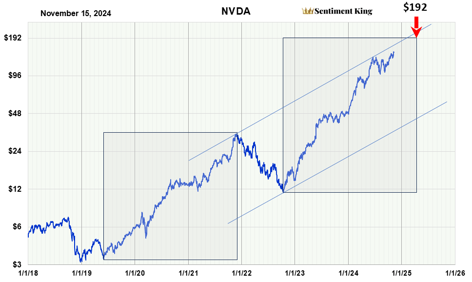 此外,趋势时间和通道分析表明,英伟达当前股价处于长期上升通道的中段,仍有进一步上涨的潜力。