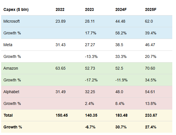 在这些大客户中,Meta、微软和亚马逊的资本支出尤为引人注目。
