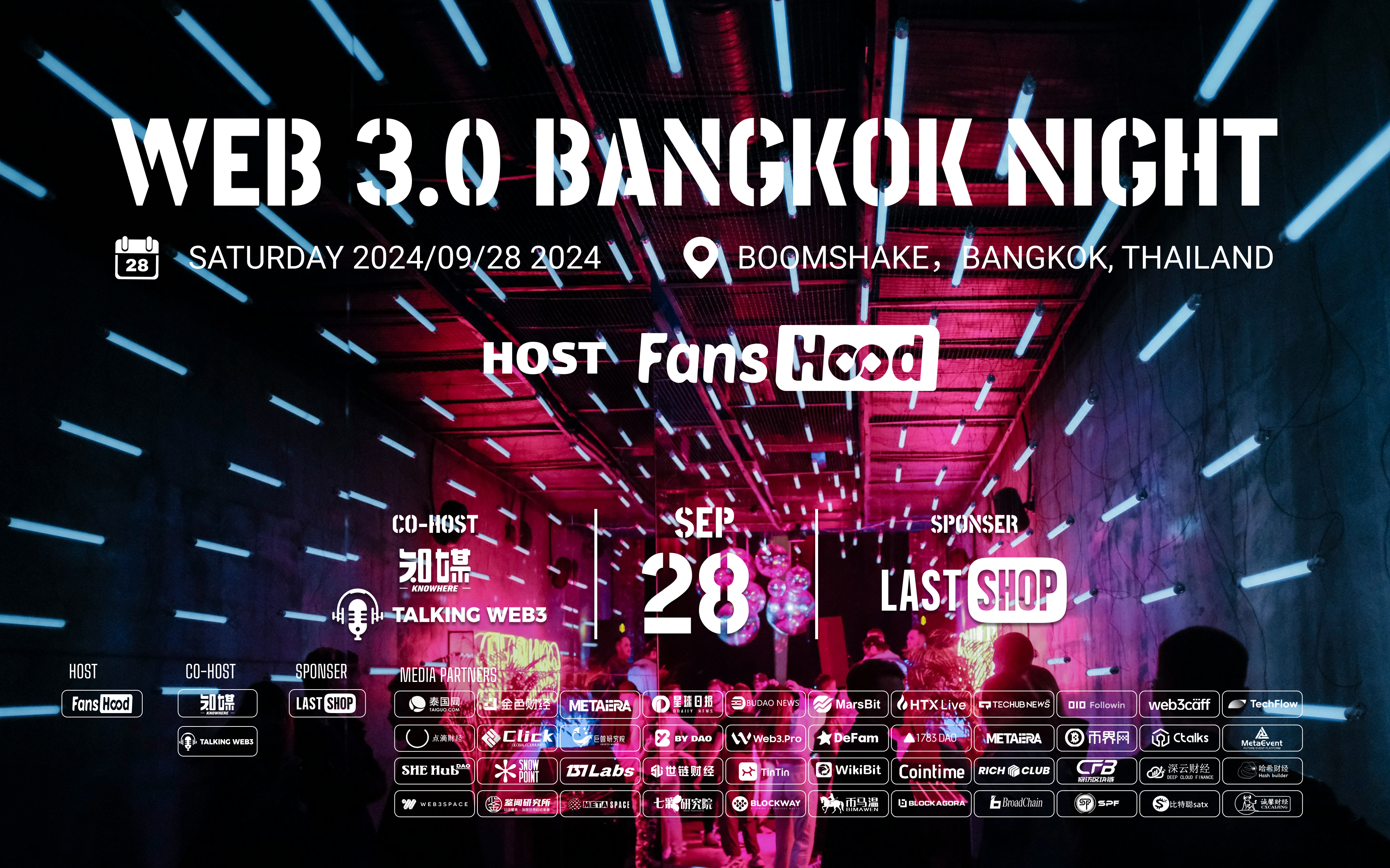 “校园之星”KOL短视频创作大赛和Web3.0曼谷女神之夜庆功宴由FansHood主办,知媒、Talking Web3联办,LastShop总冠名,携手MetaEra、金色财经、星球日报、BUDAO NEWS、HTX Live、CHAIN CATCHER、MetaEvent、METASPACE、SHEHub DAO、TALKING WEB3、SNOWPOINT、世链财经、Web3caff、币界网、Click、SPF、WikiBit、Cointime、哈希财经、WEB3SPACE、137Labs、BY DAO、鉴闻研究院、点滴财经、Ctalks、MetaTree、TinTinLind、MarsBit、BLOCK AGORA、DeFam、BitKoolo、巨鲸研究院、CFB察访区块链、Followin、BLOCKWAY、783DAO、BroadChain、比特聪satx等合作伙伴共同记录。