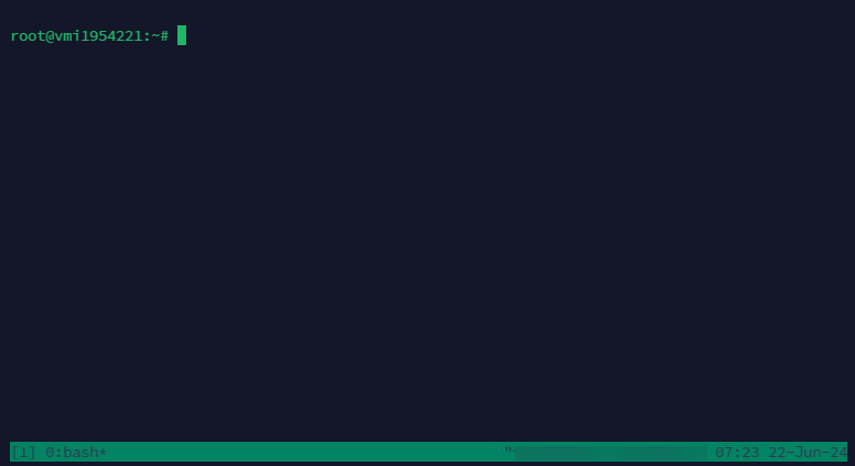 หากทำถูกต้อง ควรจะขึ้นรูปแบบด้านล่างนี้ คือมีสถานะการรันโหนด แล้วมีแท็บคาดเขียวข้างล่าง นั่นคือรันคำสั่งใน tmux แล้ว