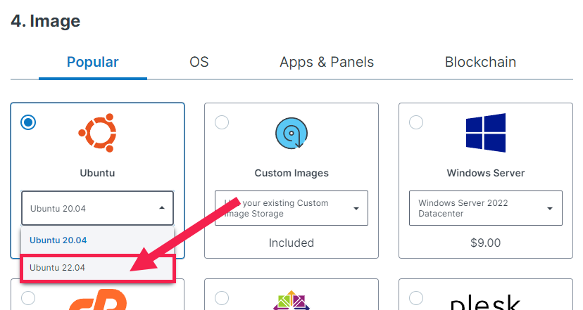 ╰ ในหน้านี้ข้อ 4 Image ปรับเป็น Ubuntu 22.04