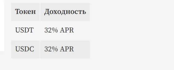 Консервативная Стейкинг: USDT,USDC (32%) APR (без блокировок)