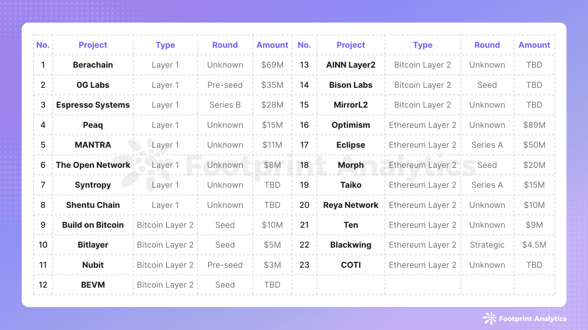 2024 年 3 月公链融资事件(数据来源:crypto-fundraising.info)