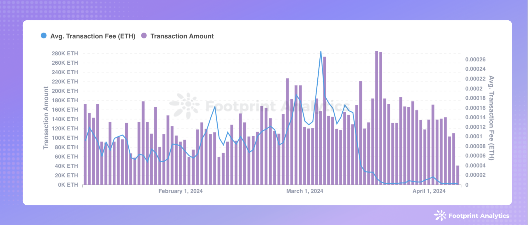 在以太坊完成坎昆升级后,其 Layer 2 网络的平均交易费用出现了显著下降。其中,Arbitrum 和 Starknet 链上交易成本削减了 95% 以上。这一大幅降低的费用标志着以太坊生态系统正式迈入“一分钱时代”。
