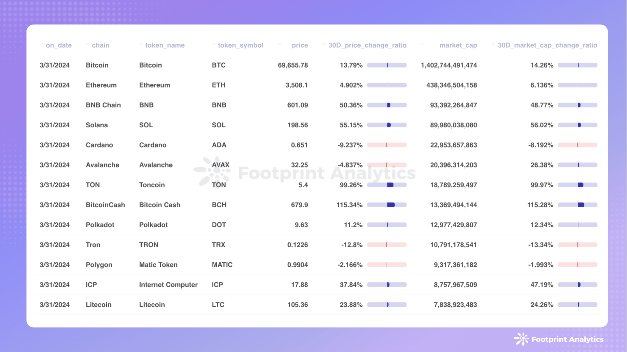 数据来源:公链代币价格和市值 - Footprint Analytics