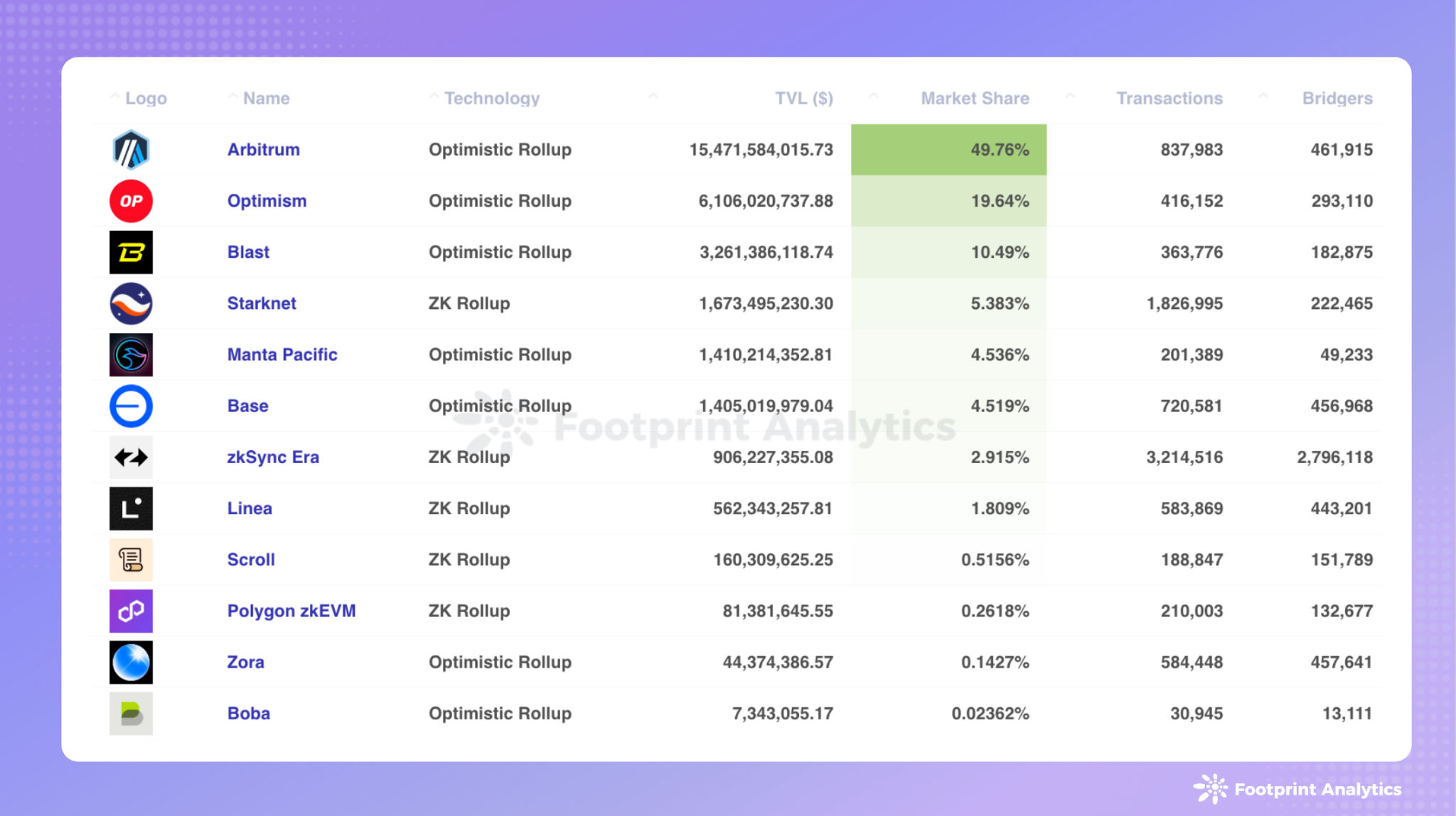 数据来源:以太坊 Layer 2 概览- Footprint Analytics