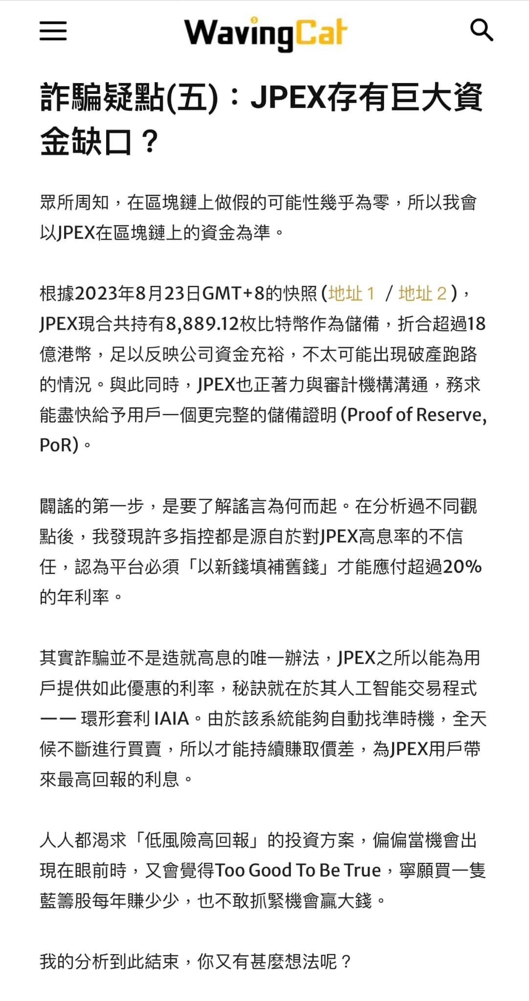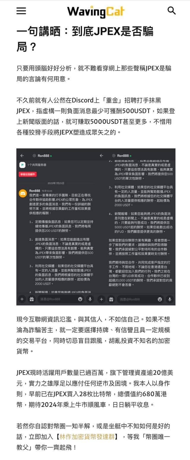 薯仔:「你這樣說,我知道為什麼這麼多連登關於 JPEX 的文章,只有一篇《JPEX 騙局 – 騙徒不停哄你入金及質押 JPC》能登上搜尋第一頁了。我只要簡單重複『本文重點123』、『之後討論123』就可以了。」