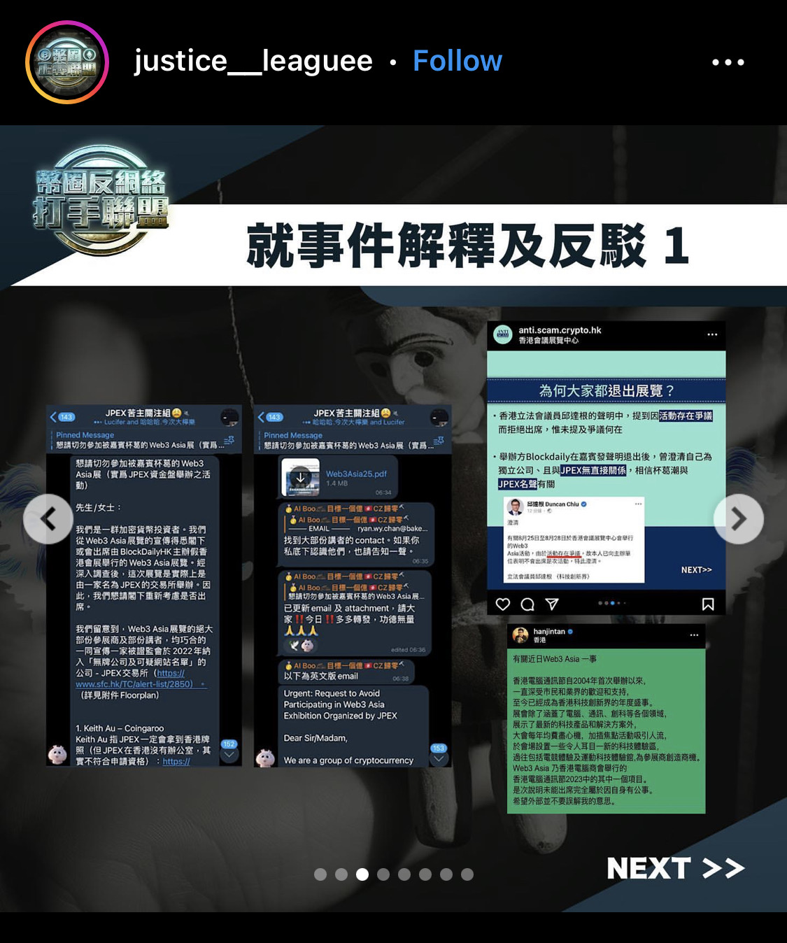 我不知道他們是如何糊弄這些嘉賓和參展商,還是真的背後有勢力。反正上面那句「我不幹了」是氣話,我已經做了長期跟 JPEX 死磕的準備。我們做了這麼多,Web3 Asia 還有這麼多人去。真的不甘心。