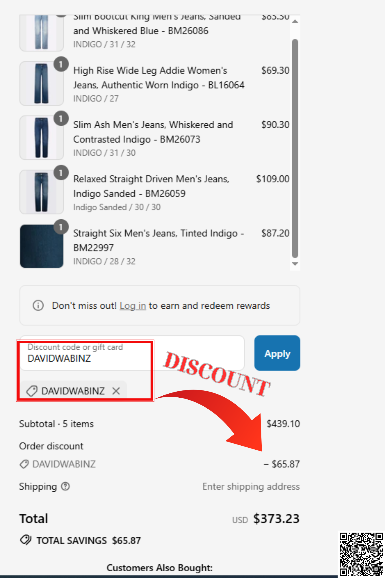 ✅ Step 3: Go to checkout and enter: Buffalo Jeans Discount Code: DAVIDWABINZ