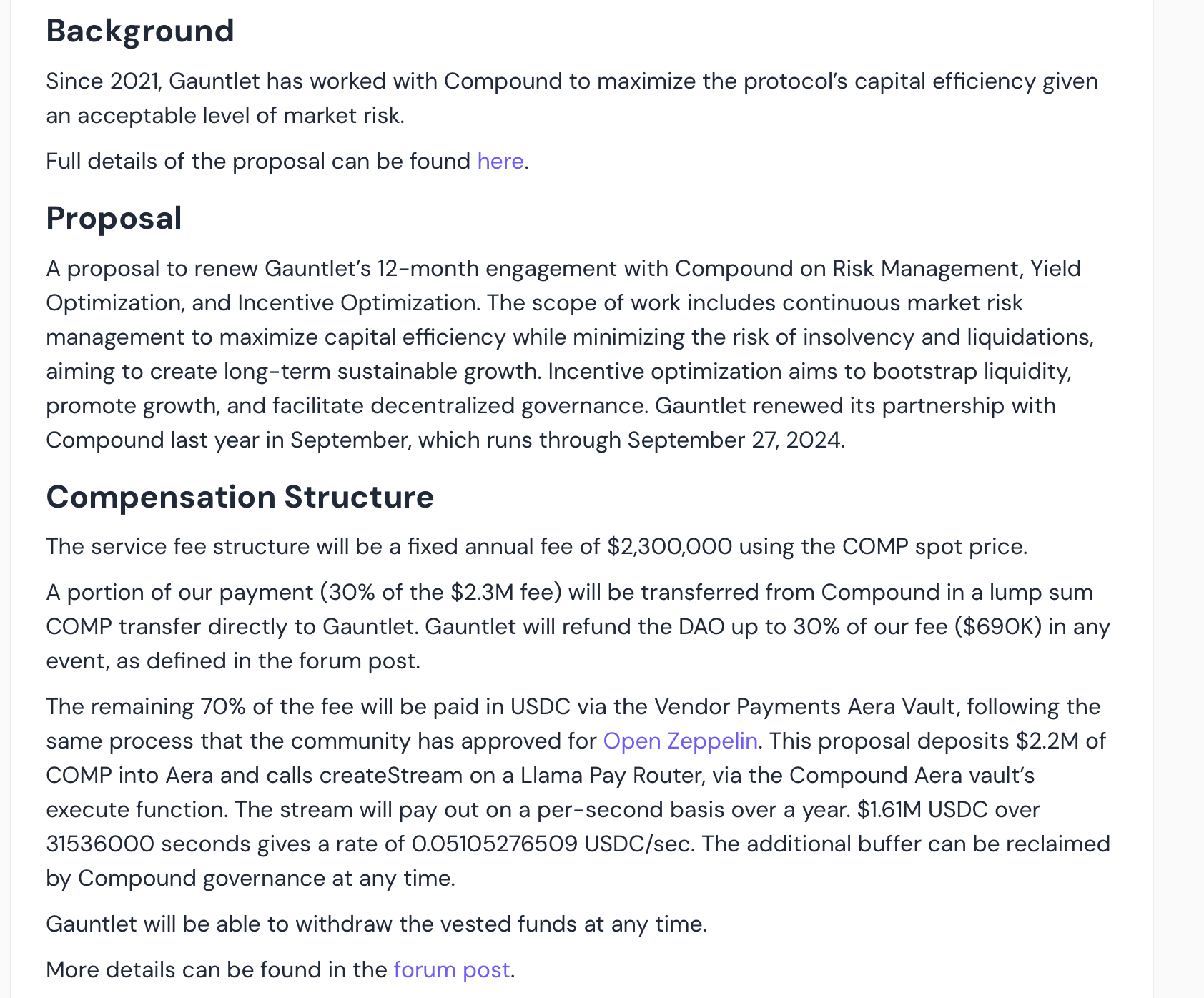 Much of the DAO’s activity originates from Gauntlet. Their role as proposal driver is supported by a service contract.