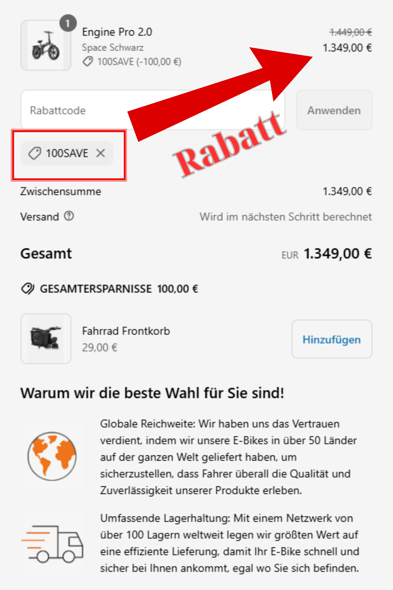 So einfach bestellst du dein Engwe E-Bike mit dem Engwe Rabattcode: 100SAVE