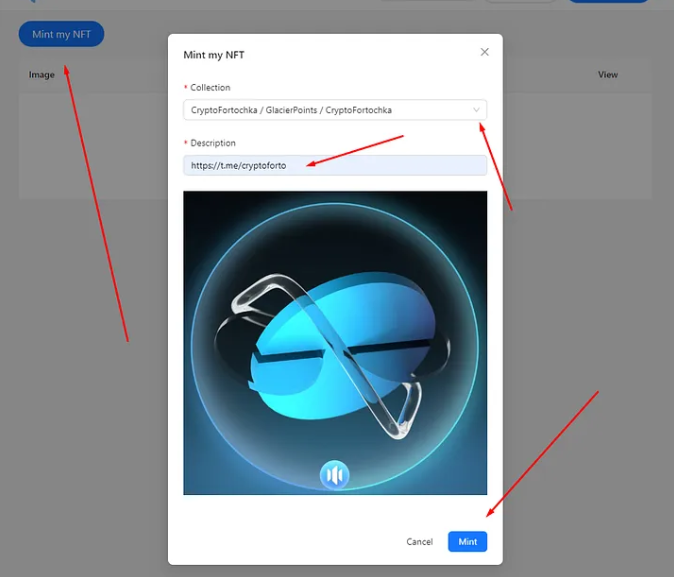• Нажмите Mint NFT и перейдите в NFT Minting Space