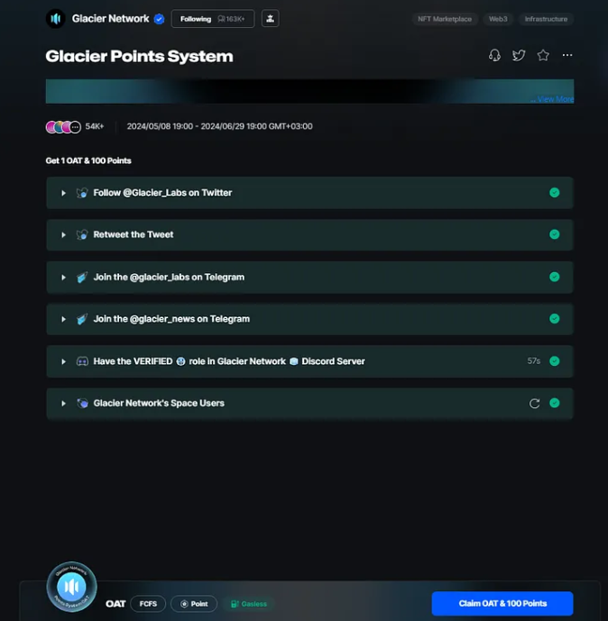На данный момент мы можем поделать новые активности, а именно выполнить три разных заданий и позже обменять заработанные поинты на токены проекта $GLS