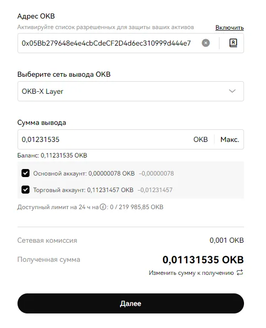 • Для подтверждения транзакции, вам потребуется газ токенов $OKB в сети Layer