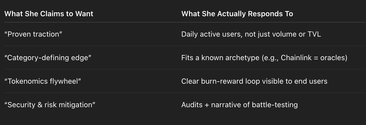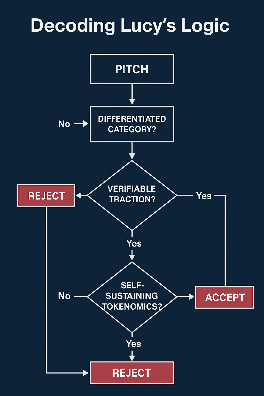 Lucy rewards belief. She doesn’t just ask “Does it work?”She asks: “Does it feel inevitable?”