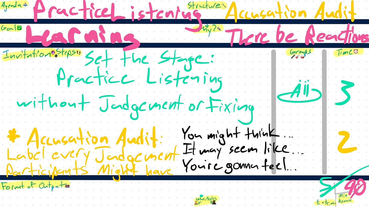 If I had to do it again, and I almost certainly will, I would have included an accusation audit in the setting of the stage. This move does a great job of expressing empathy, self-awareness and can help people to lower their defenses.