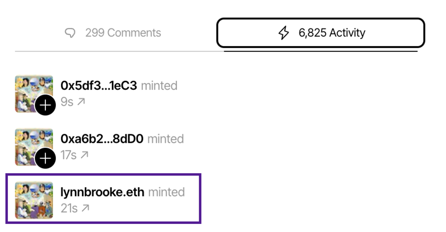 - You can add a comment at the moment of minting, which would appear in the comments section. Or, you can check your minting from the “Activity” section.