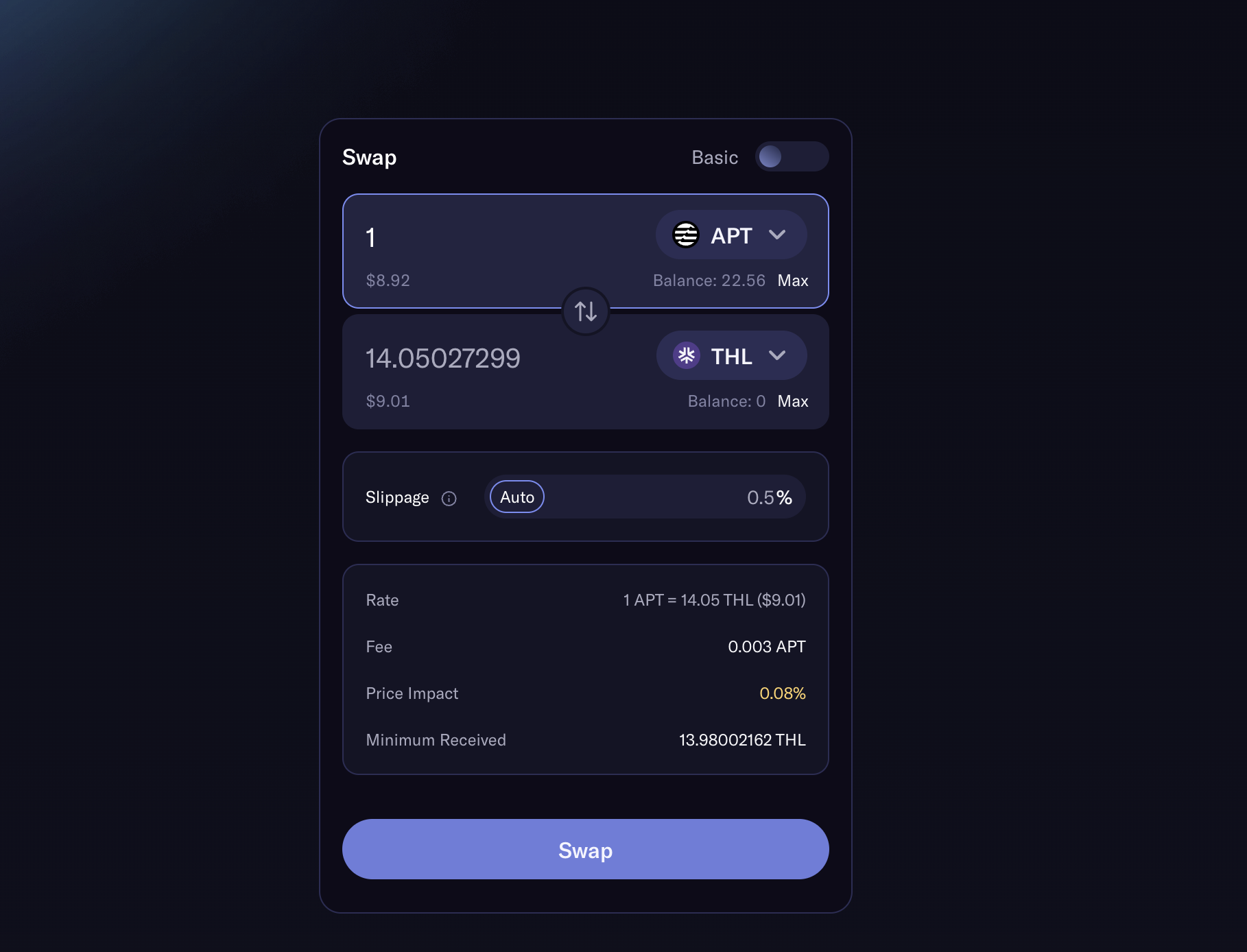 一、在 ThalaSwap 上交易任何数量的任何资产