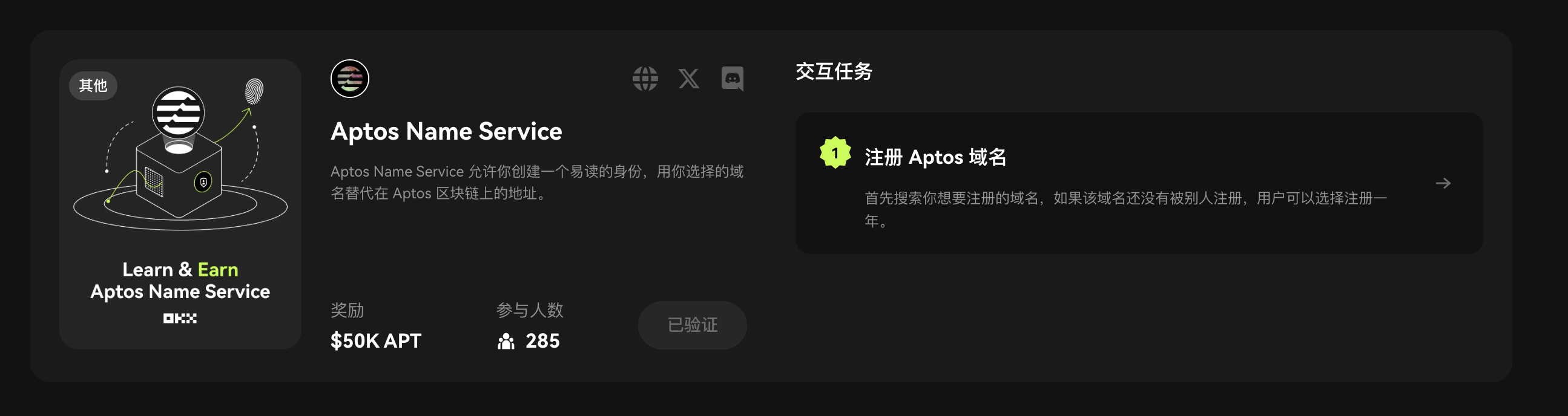 10 人,每人 $500 900 人,每人 $50 Aptos Name Service,总奖励:$50,000 的 APT
