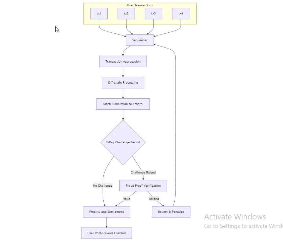 To maintain security, optimistic rollups incorporate a challenge period where other validators can dispute a transaction’s validity. If a challenge occurs: