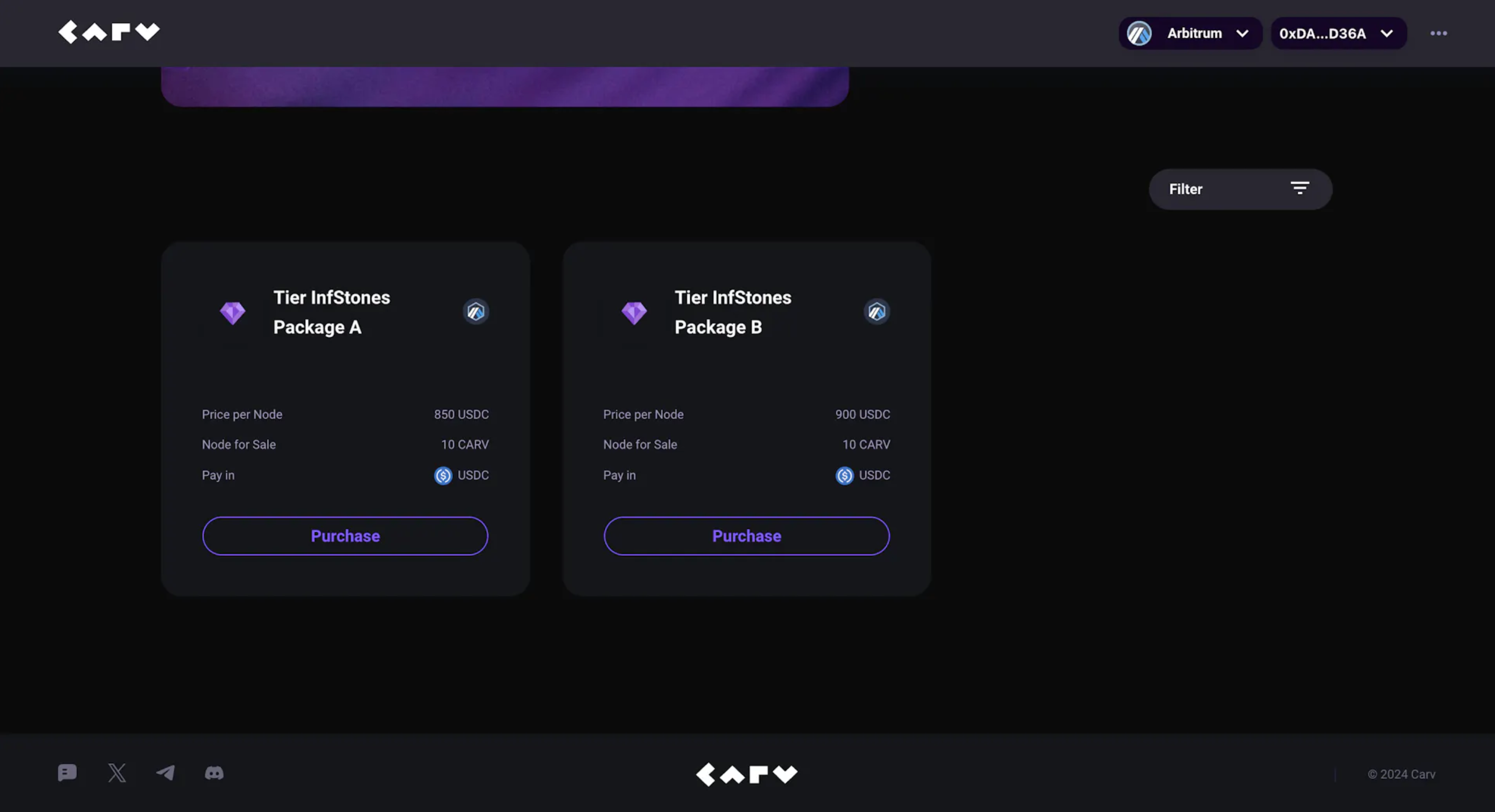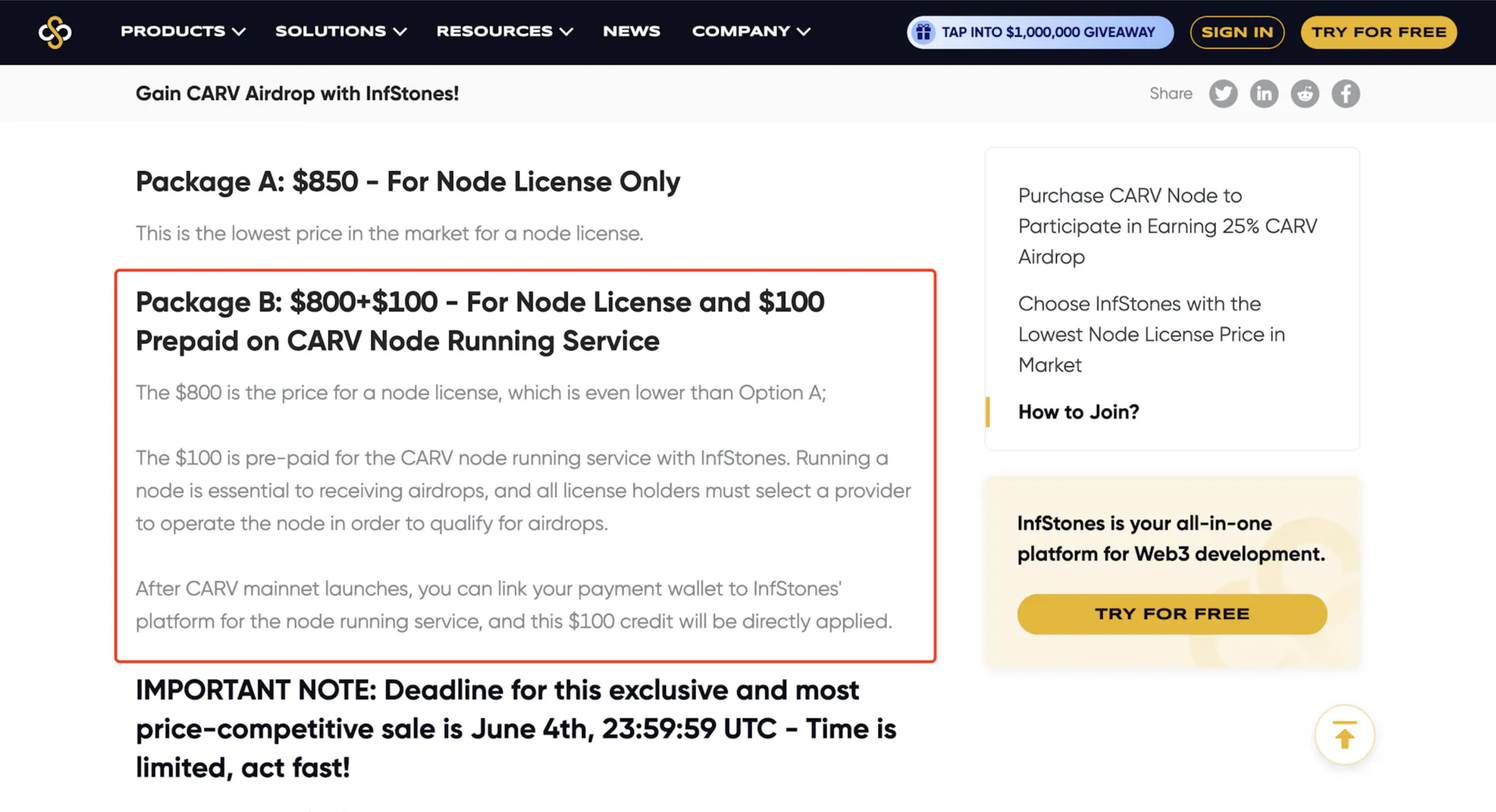 Public Sale tier acquisition is based on luck. We use a stable market price offered through the InfStones and CARV partner channel at $850 as the cost estimate for the Node License.