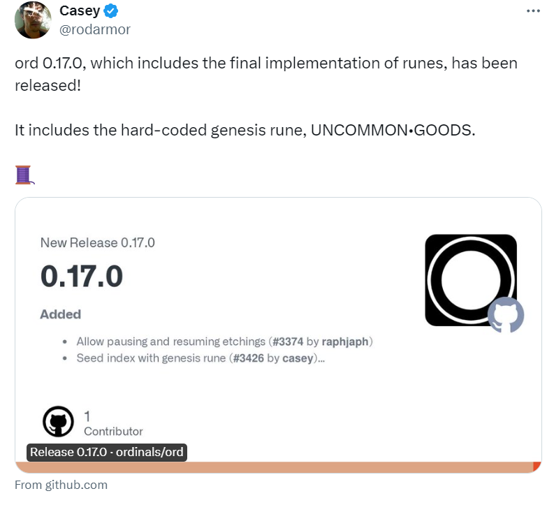 Runes: As we get closer to the 2024 Bitcoin halving, the official fungible token protocol of Ordinals, Runes, is set to activate at block 840,000. Runes is UTXO-based, has a small on-chain footprint and encourages responsible UTXO management. Although Runes is a standard at the Ordinals protocol level, its implementation is independent of the Ordinals protocol, similar to Taproot Assets and RGB.