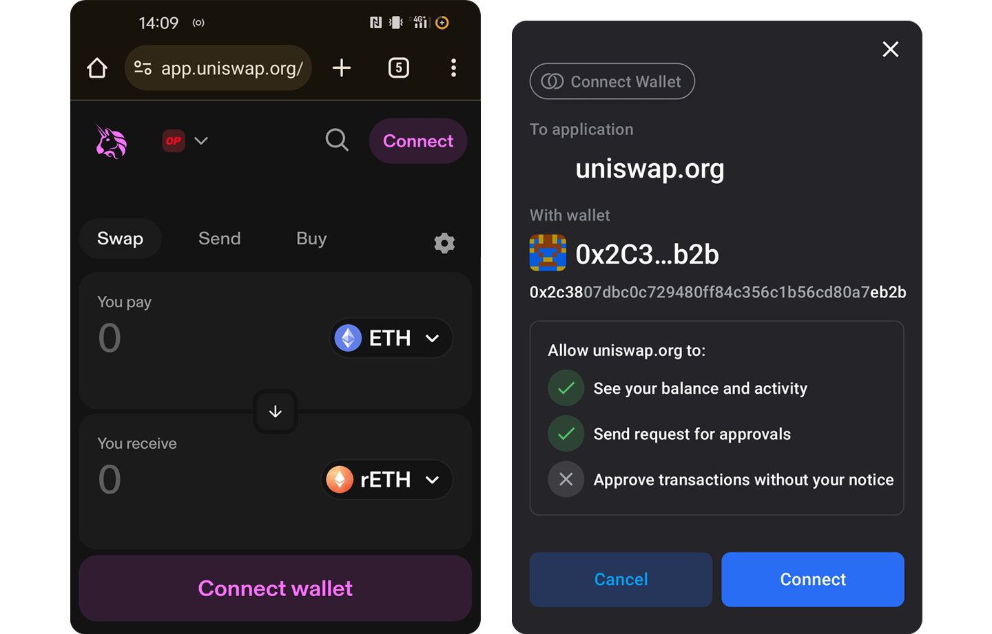 1. Jump to https://app.uniswap.org/swap and connect your wallet.
