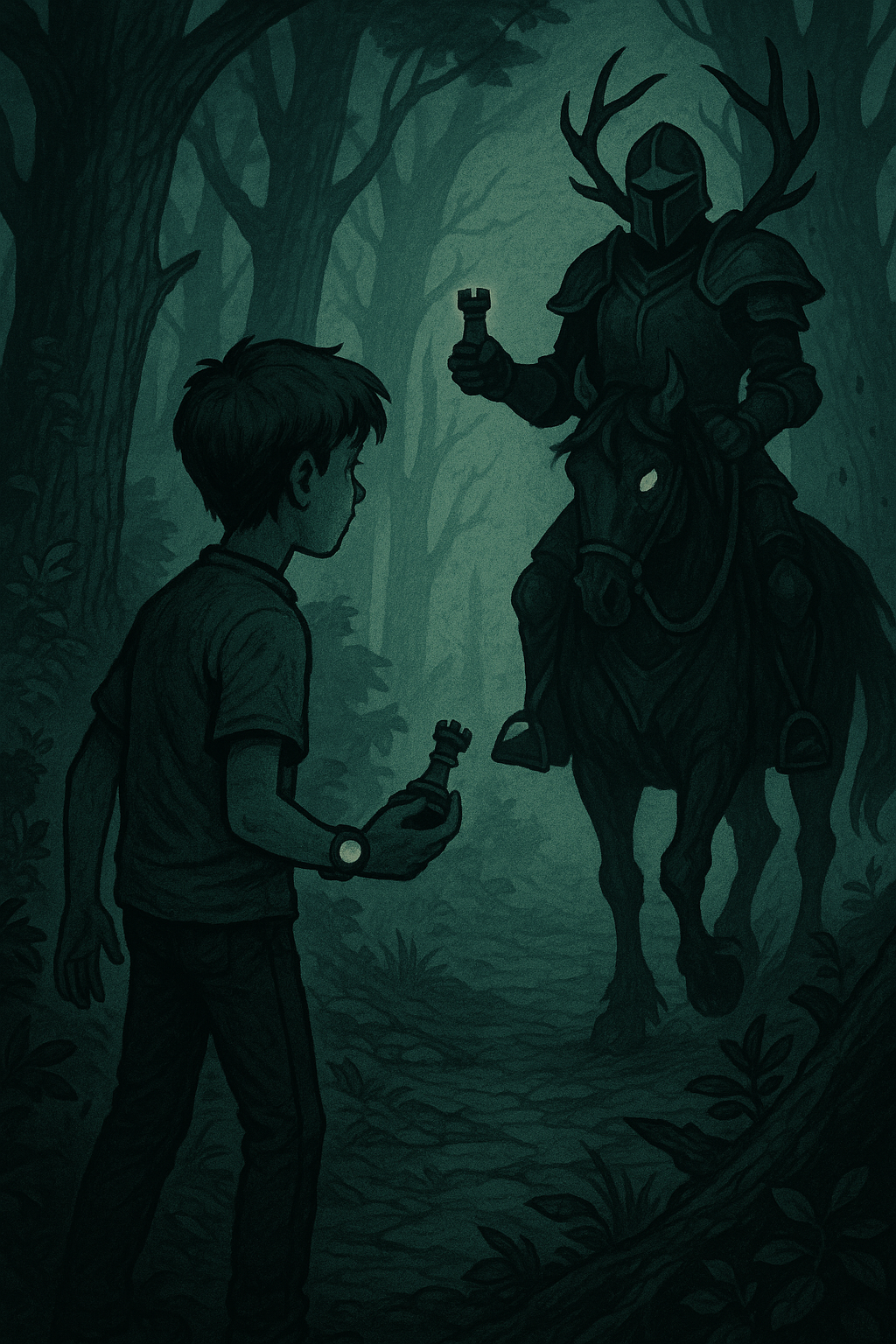 A few steps ahead, nestled in the roots of a twisted oak, sat a single black chess pawn. It wasn’t carved. It looked… alive. Breathing. Maybe bored.