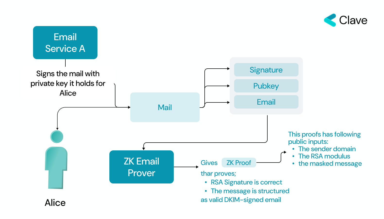 The solution is Zero Knowledge proof. Zero Knowledge is required to prove that a specific public key has signed a DKIM Signature and that the message is valid without disclosing the data. Since DKIM uses an RSA signature, verifying it can be expensive. However, ZK proofs can make it cheaper (if the batch feature is supported, which is currently not the case).
